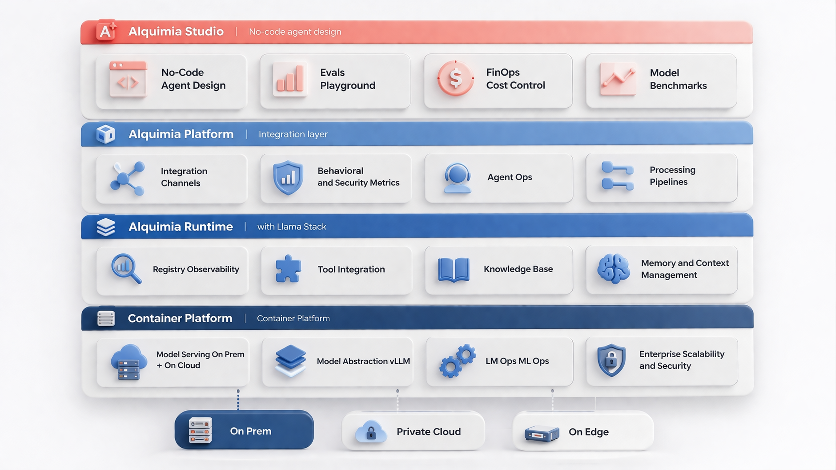 La plataforma Alquimia es una herramienta diseñada para crear, orquestar y gestionar librerías de agentes de IA, con control de principio a fin y alineados a la voz, datos y procesos internos de cada compañía.